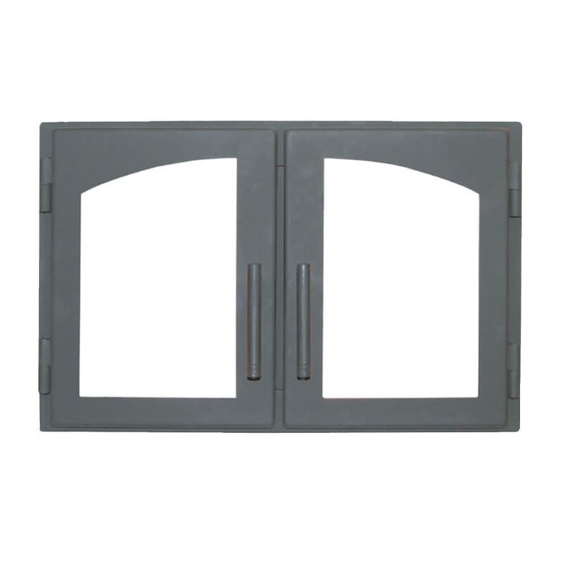 Двустворчатая дверь от известного отечественного бренда оснащена плоскими стеклокерамическими вставками, более устойчивыми к печному жару, чем обычное стекло. Они имеют форму четырёхугольника с одной дугообразной стороной. Оригинальная двойная дверь предназначена для камина или печи, изготовлена из высококачественной стали, устойчивой к механическим повреждениям и перепадам температур. Она позволяет дольше сохранять тепло в печи, так как для того, чтобы подкинуть дрова в огонь, достаточно открыть всего одну дверцу. Удобные тонкие ручки идеально вписываются в элегантный дизайн.