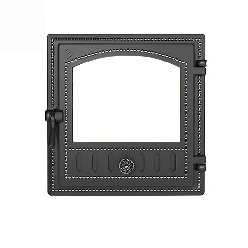 Двери изготовлены из качественного чугуна по ГОСТ 1412-85, производятся в комплектациях с глухим полотном или стеклом. Ручки дверей также сделаны из чугуна.