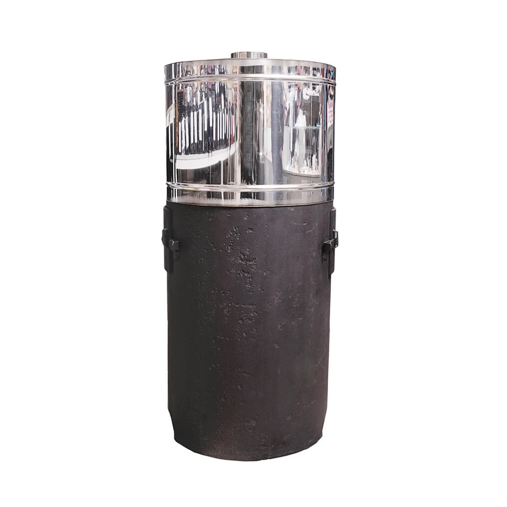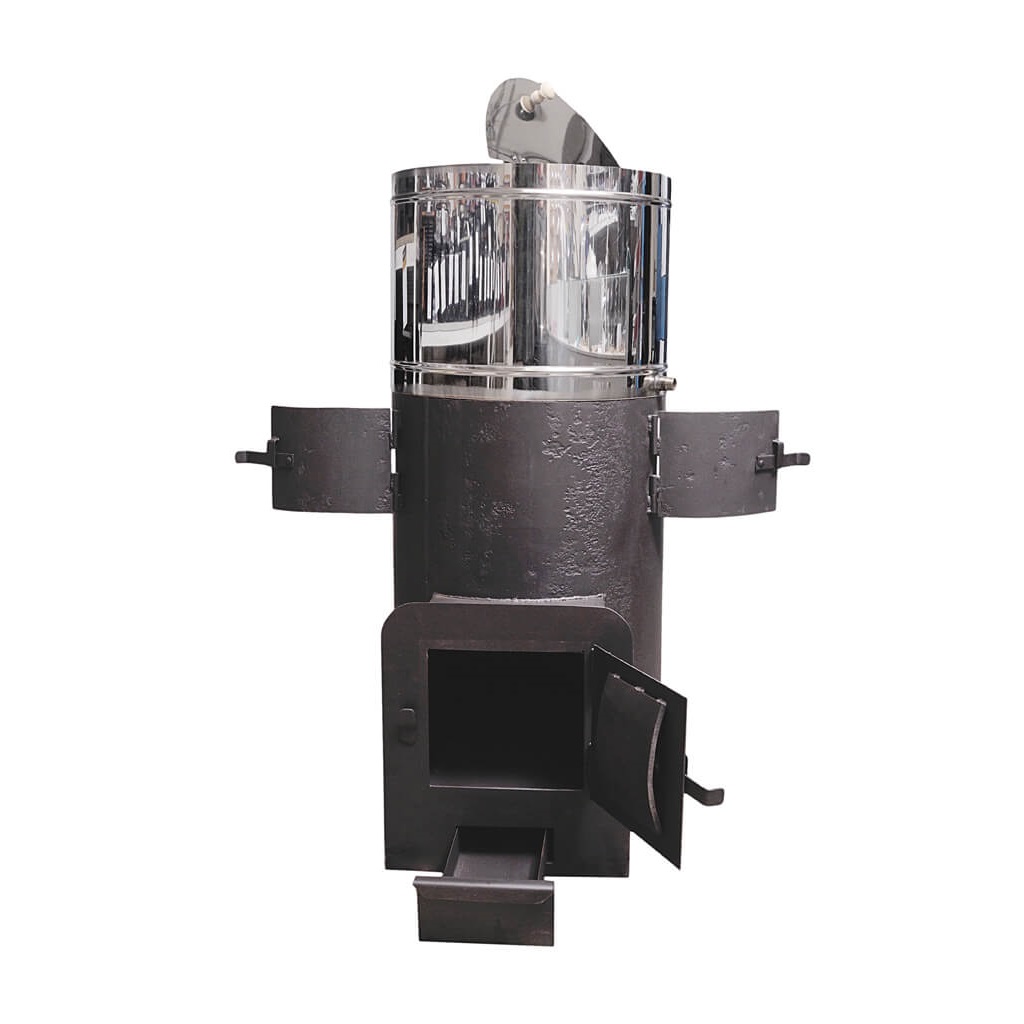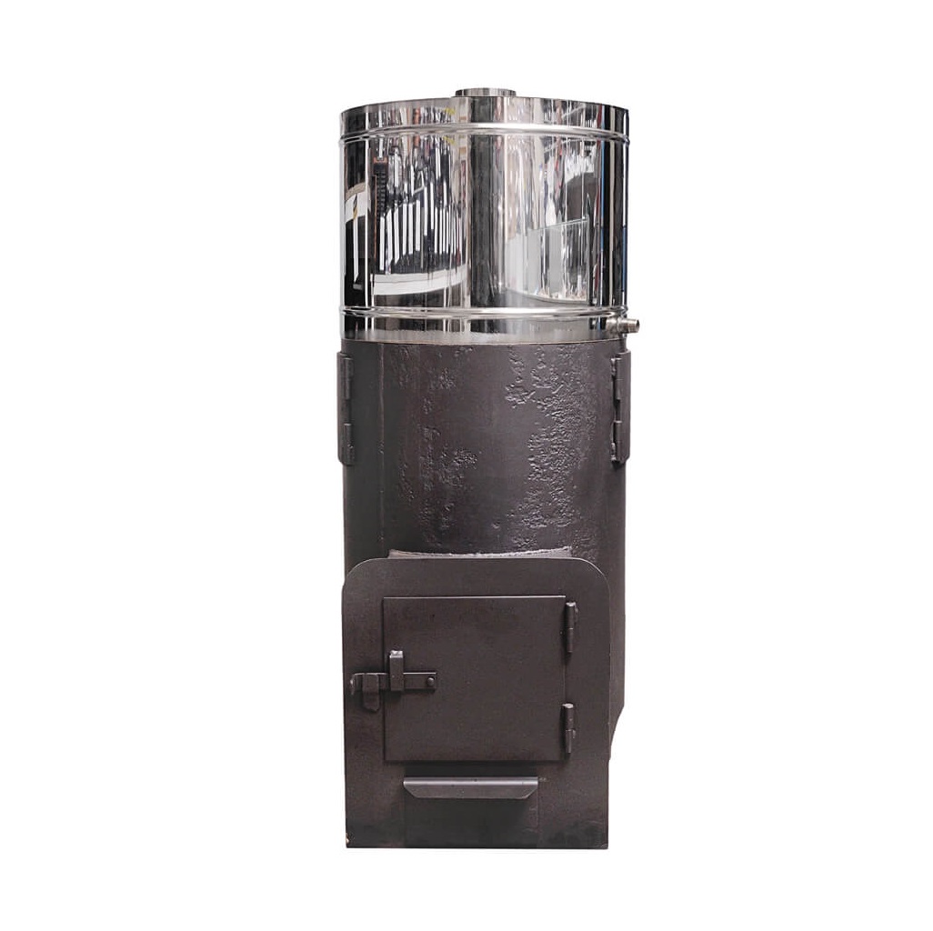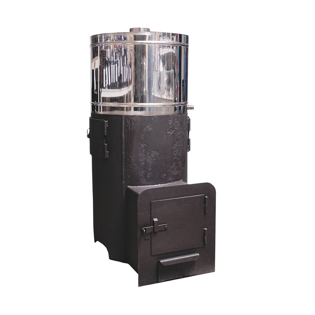 Банная печь Добрая с закрытой каменкой. Предназначена для эксплуатации в банных помещениях. Материал изготовления – сталь толщиной 8 мм. Вид топлива – дрова. Бак устанавливается сверху на основную часть, при необходимости – снимается. Печь имеет несколько модификаций в зависимости от расположения в бане: каменка слева, каменка справа, проходная (сквозная) каменка. При необходимости к данной печи устанавливается выносной тоннель длиной 200-300 мм для топки из смежного помещения. Печь красится жаростойкой краской Certa.