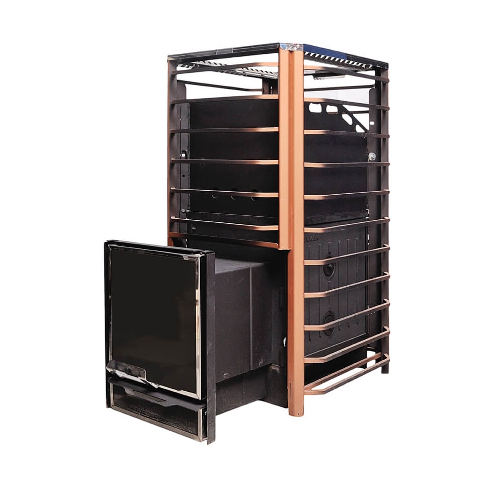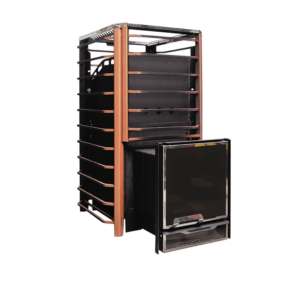 Модульная конструкция печи позволяет подстроить печь под себя и под любую баню. В ее специальной конструкции предусмотрена возможность установки дополнительного оборудования. На печь можно дополнительно установить модуль закрытой каменки, парообразователь, теплообменник под выносной бак или отопление, а также различные опции на трубу дымохода.