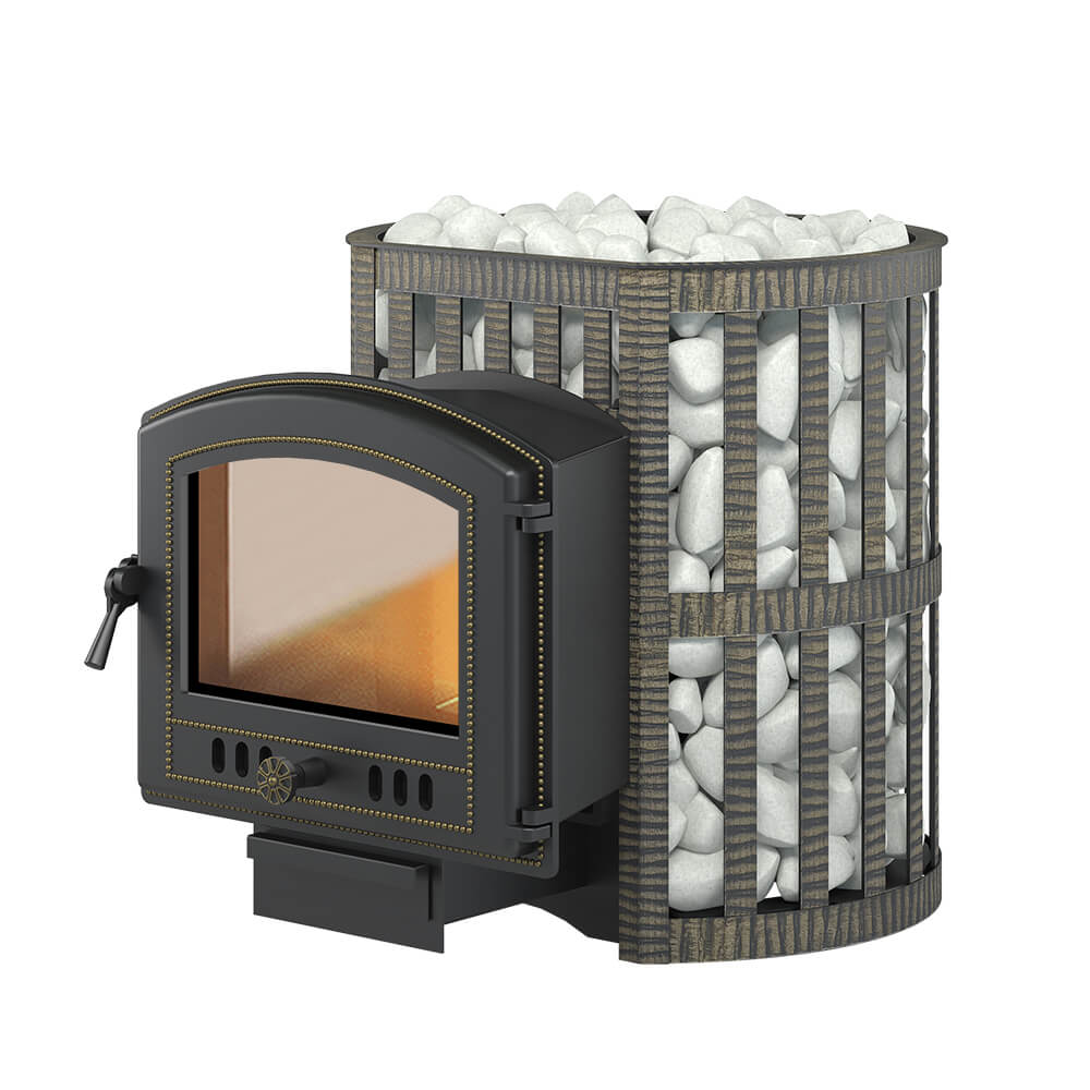 Банная чугунная печь Легенда Ковка 16 (224) укомплектована чугунной герметичной дверцей Везувий 224 с жаропрочным стеклом. Конвекционно-вентилируемый кожух "Ковка" изготовлен из металлической текстурированной полосы покрашенной термостойкой краской и покрытая патиной «Бронза».