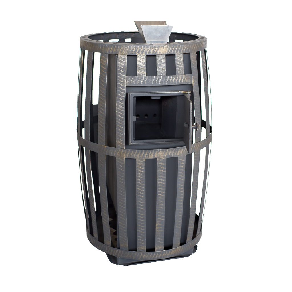 Если вы любите традиционный "паровой выстрел" - можно лить воду на камни через дверцу. Так же для безопасности в конструкции предусмотрена воронка с лейкой, равномерно распределяющей воду по камням. В этом случае густой перегретый пар выходит через отверстия в задней и боковых стенках каменки.