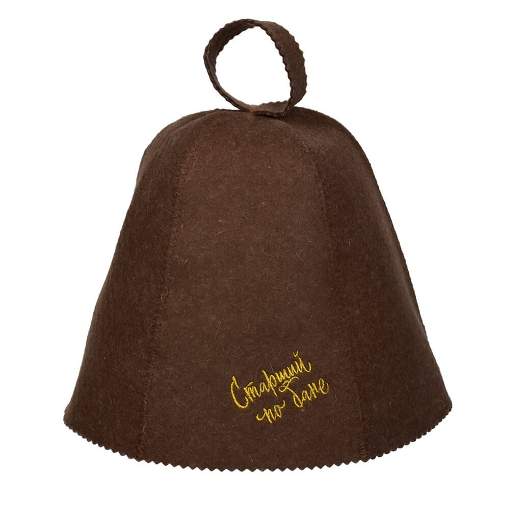 Шапка для бани Старший по бане Банные Штучки коричневая